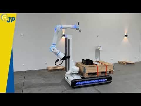 Ein fahrerloses Transportsystem kombiniert mit einem Roboterarm ist die perfekte Lösung für Ihre Intralogistik.